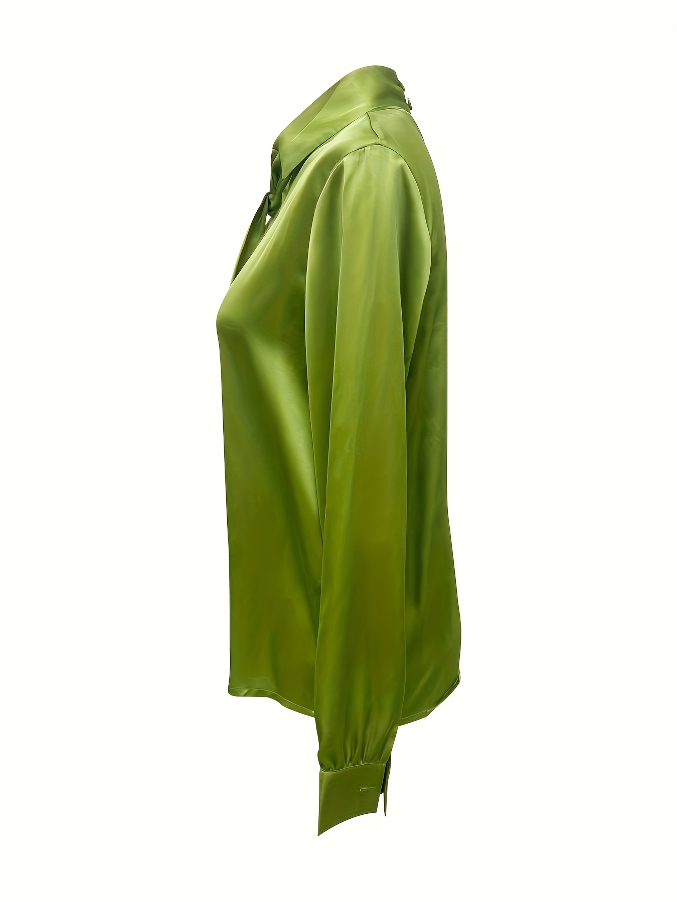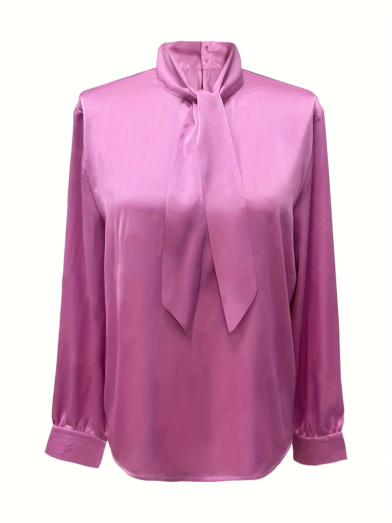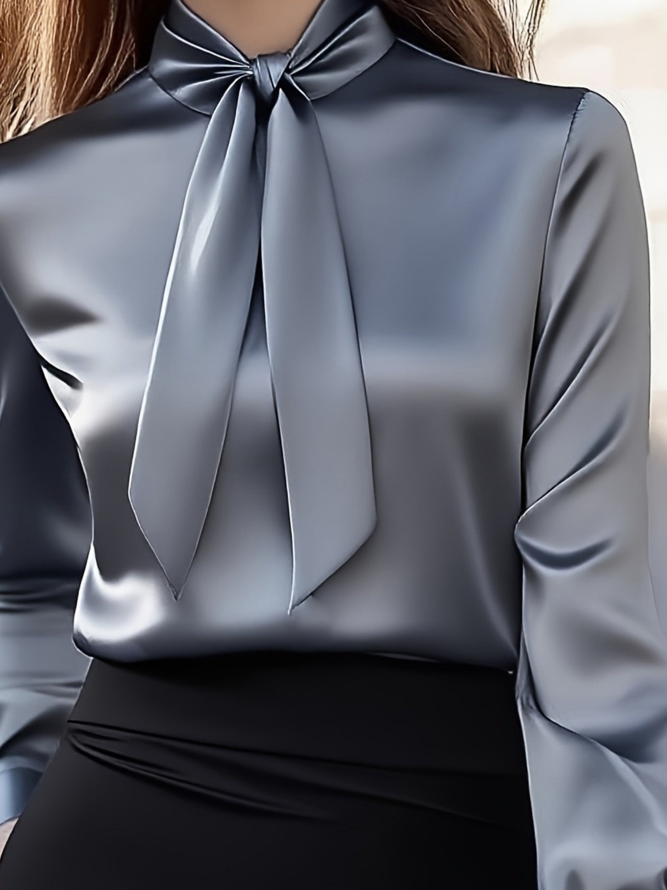 Una camisa de mujer con un elegante y suave extremo de satén, que presenta un cuello con corbata y mangas largas, perfecta para el uso diario y versátil para ir al trabajo