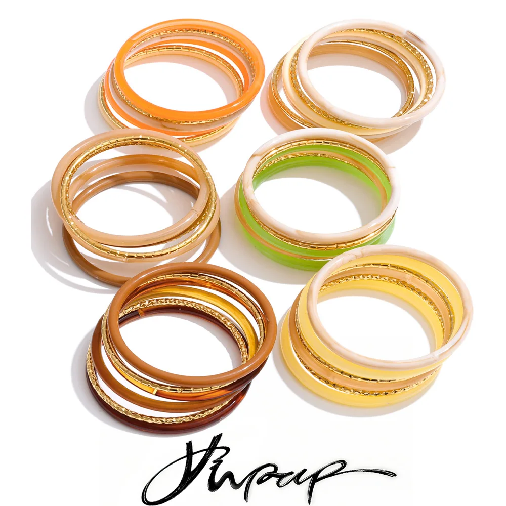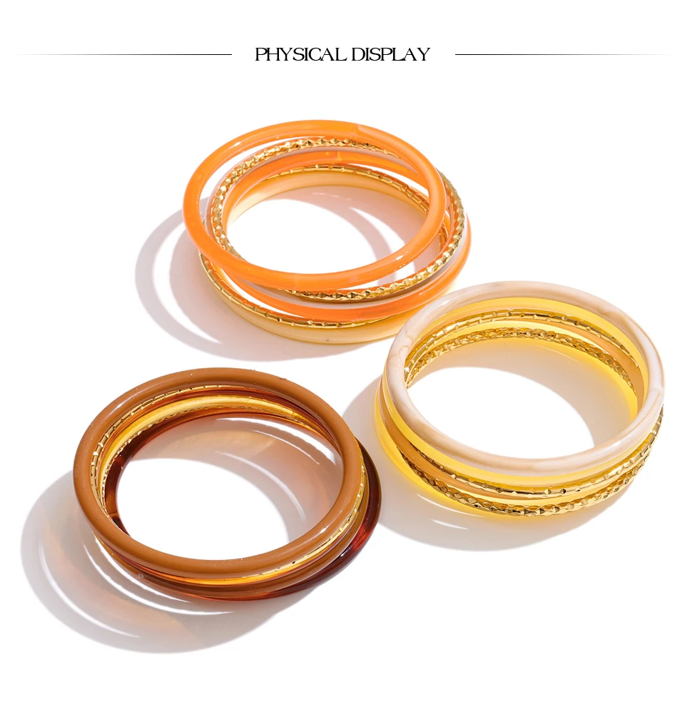 Yhpup 1 Juego 2026 pulsera apilable redonda en capas de resina multicolor brazalete estilo primavera joyería de moda de acero inoxidable resistente al agua