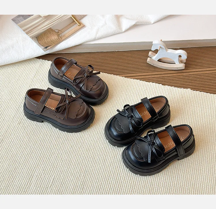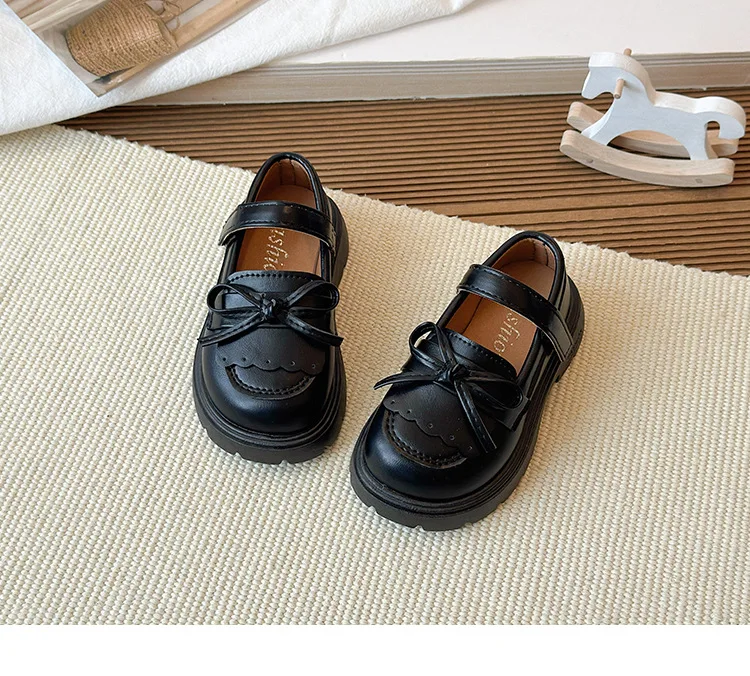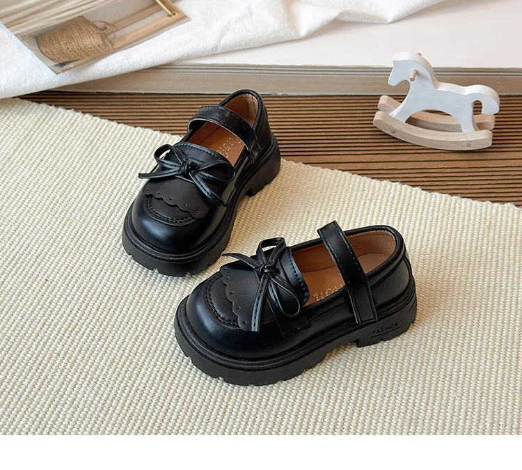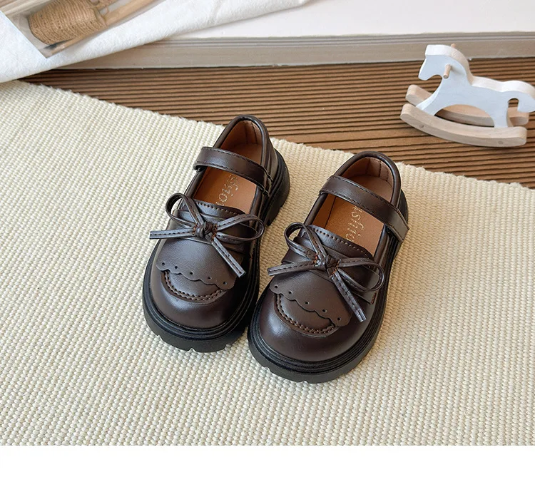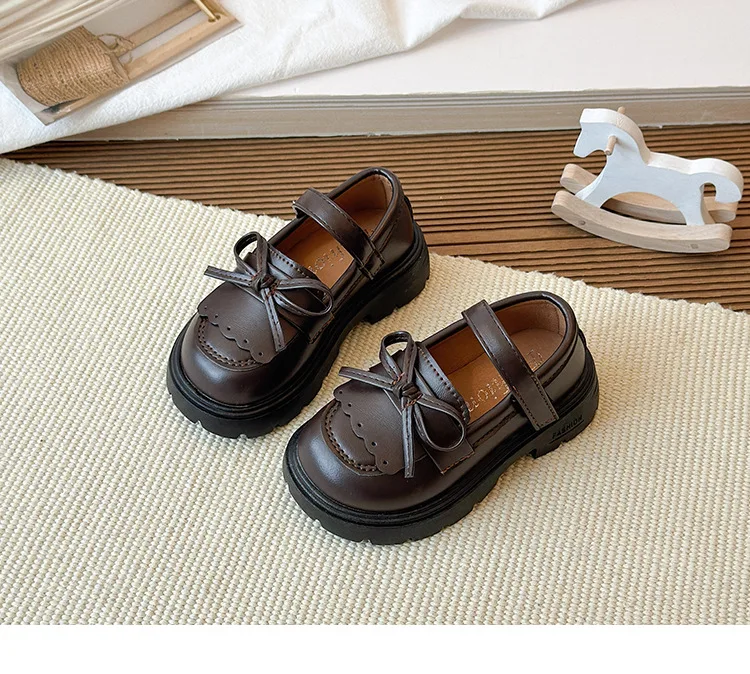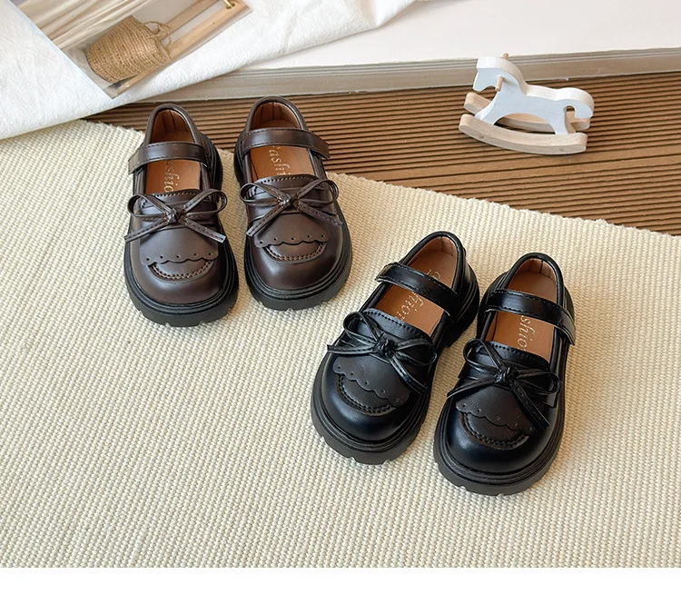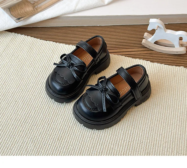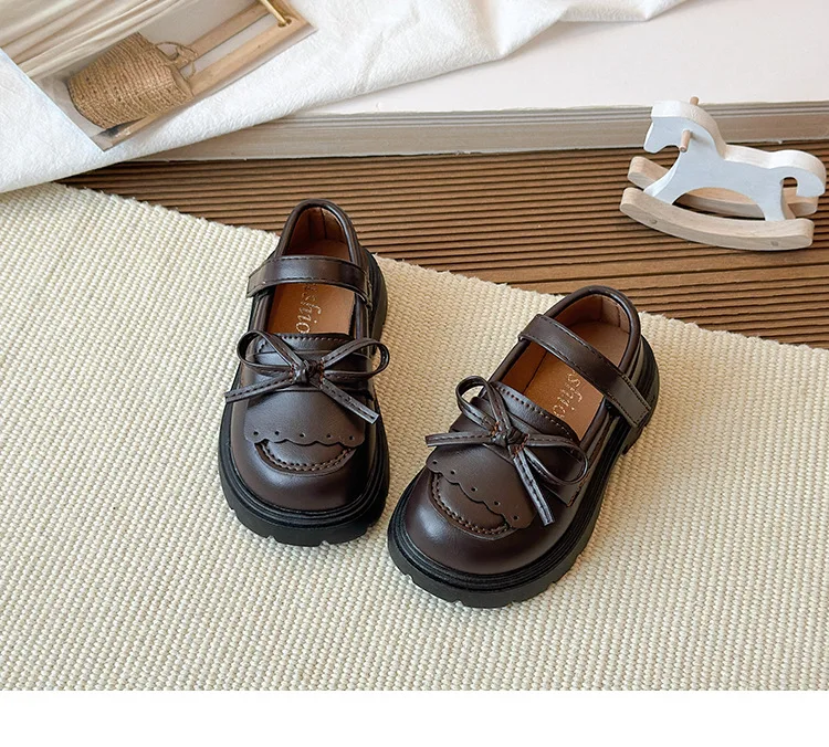 Zapatos de cuero de moda para niños Lolita, elegantes zapatos de rendimiento con borde con volantes para niñas pequeñas, zapatos informales de princesa Mary Jane para niños
