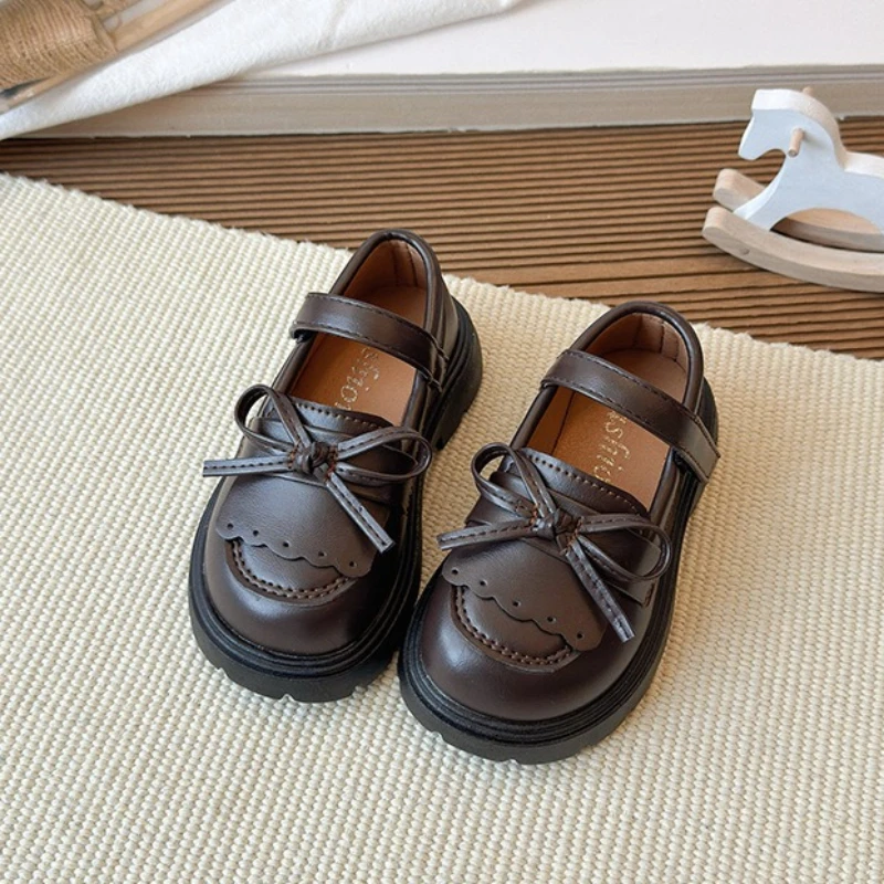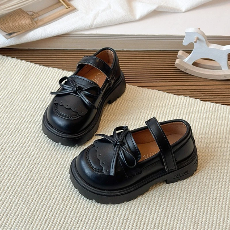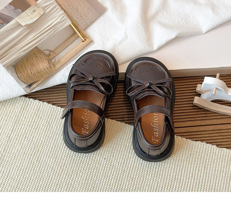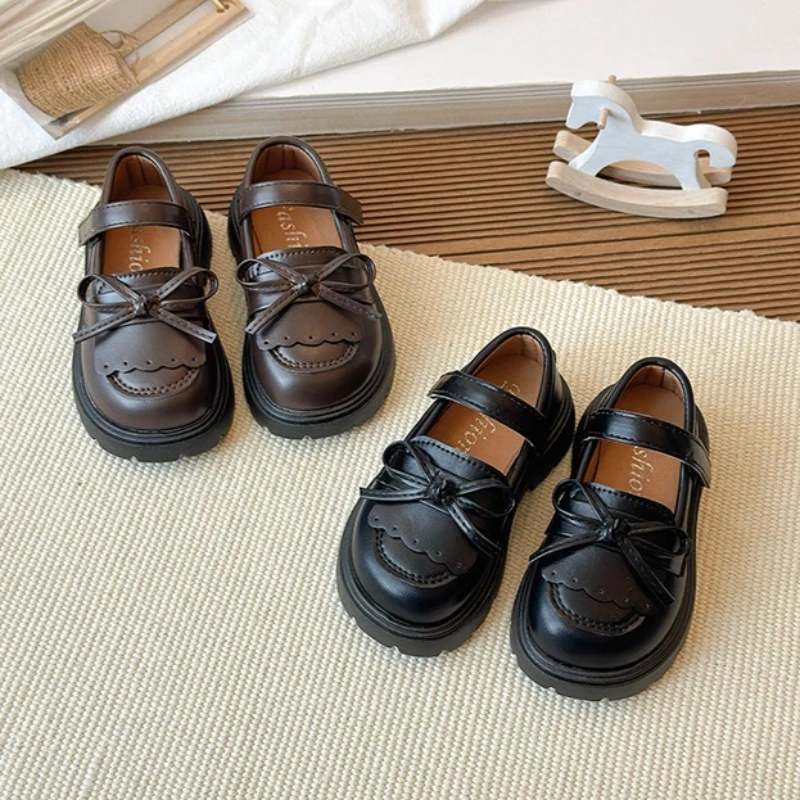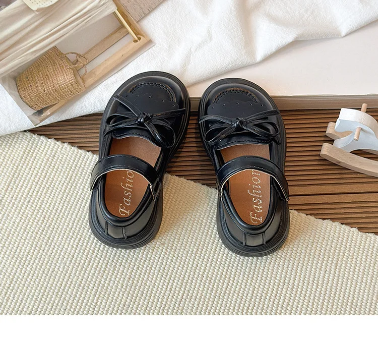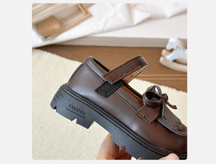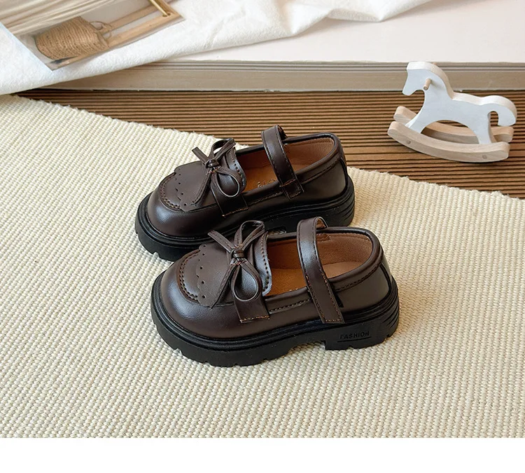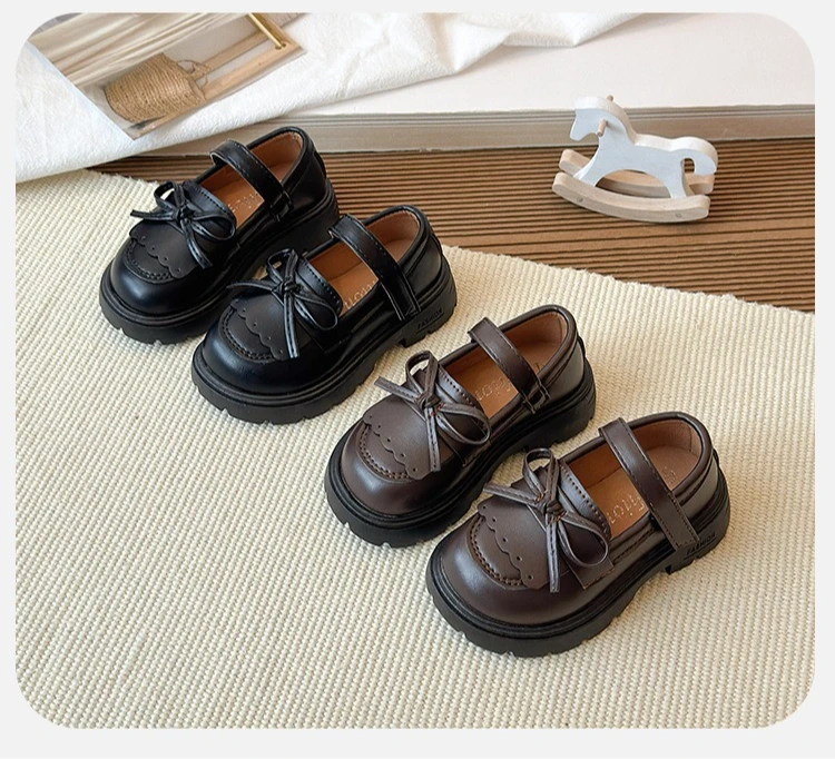 Zapatos de cuero de moda para niños Lolita, elegantes zapatos de rendimiento con borde con volantes para niñas pequeñas, zapatos informales de princesa Mary Jane para niños