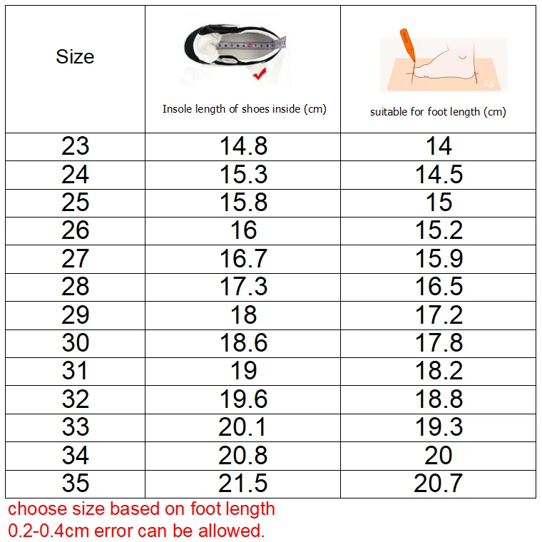Tenemos su propia imagen de tamaño para cada par de zapatos (se puede permitir un error de 0,2-0,4 cm).
