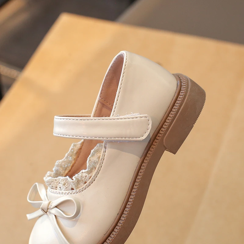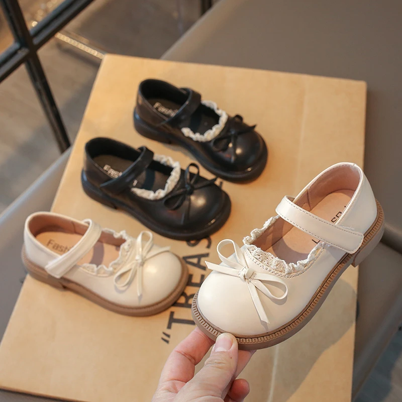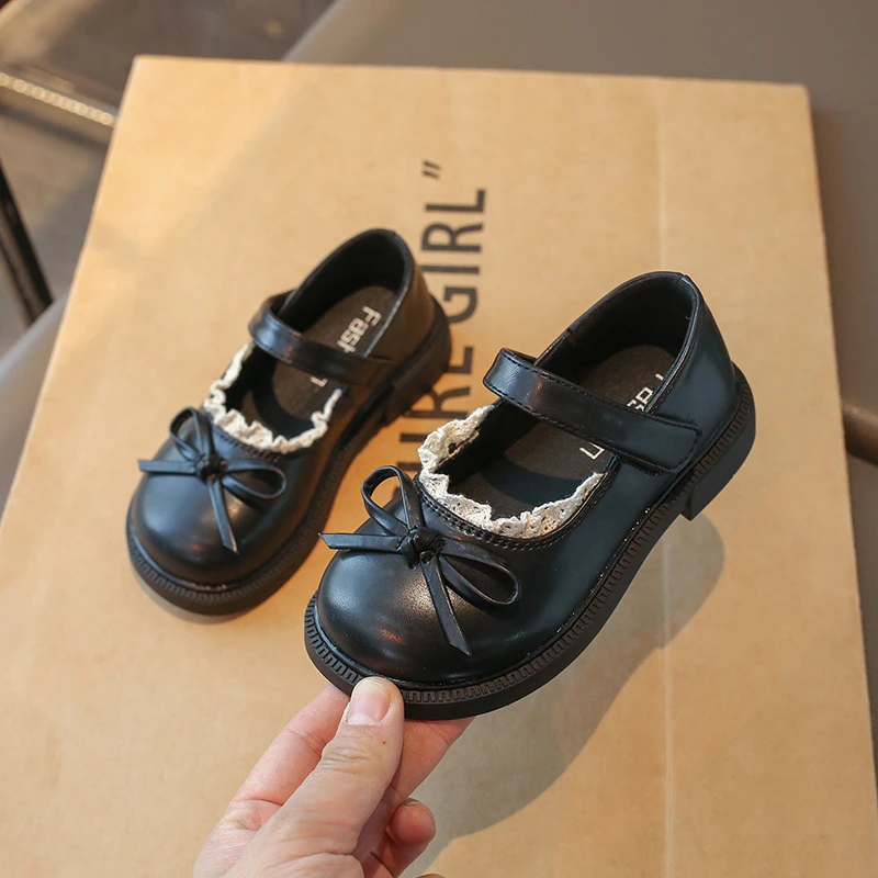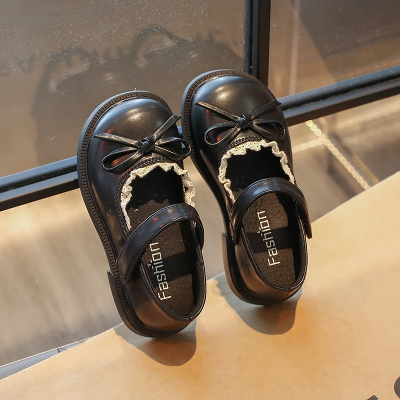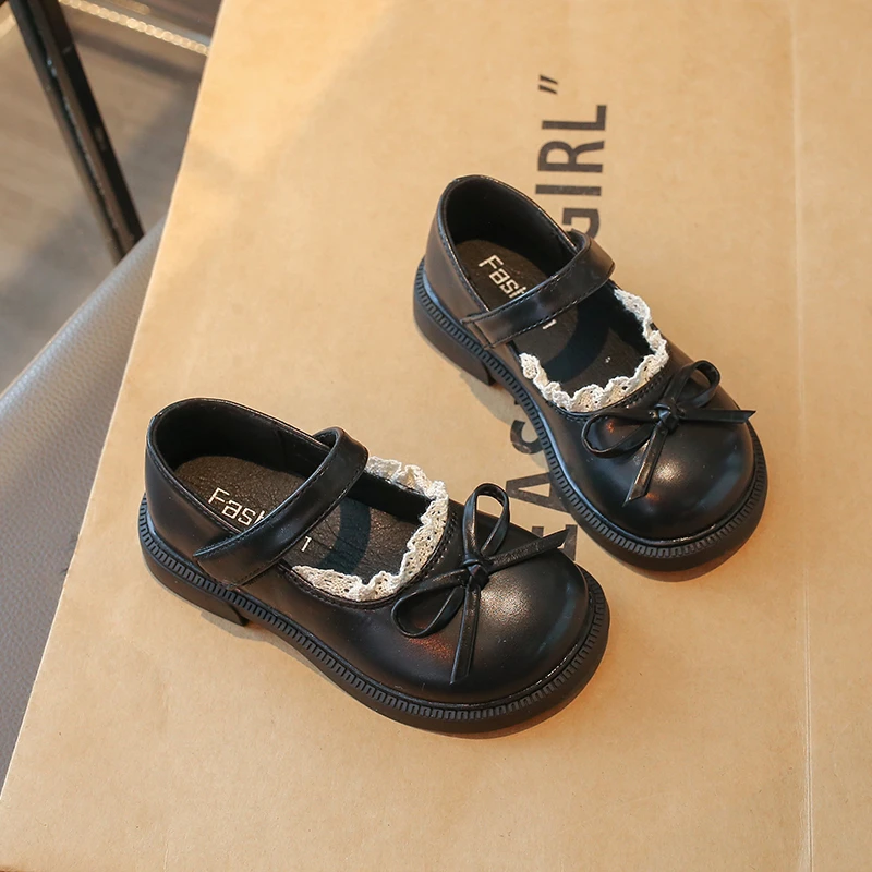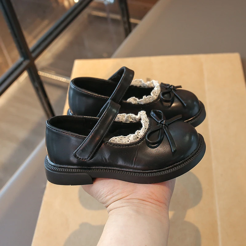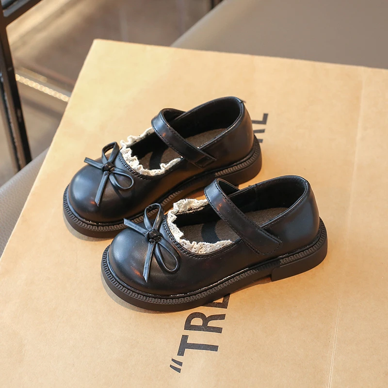 Zapatos de cuero de princesa para niñas con lazo, zapatos planos de encaje para niños, zapatos Mary Jane, zapatos de rendimiento a la moda para niños, talla 23-36