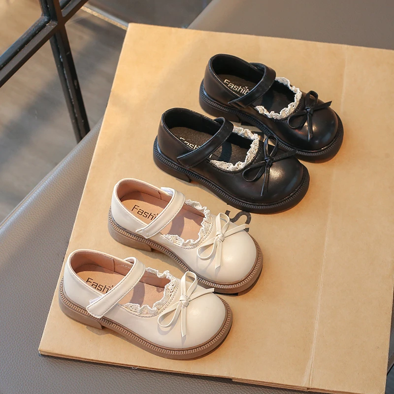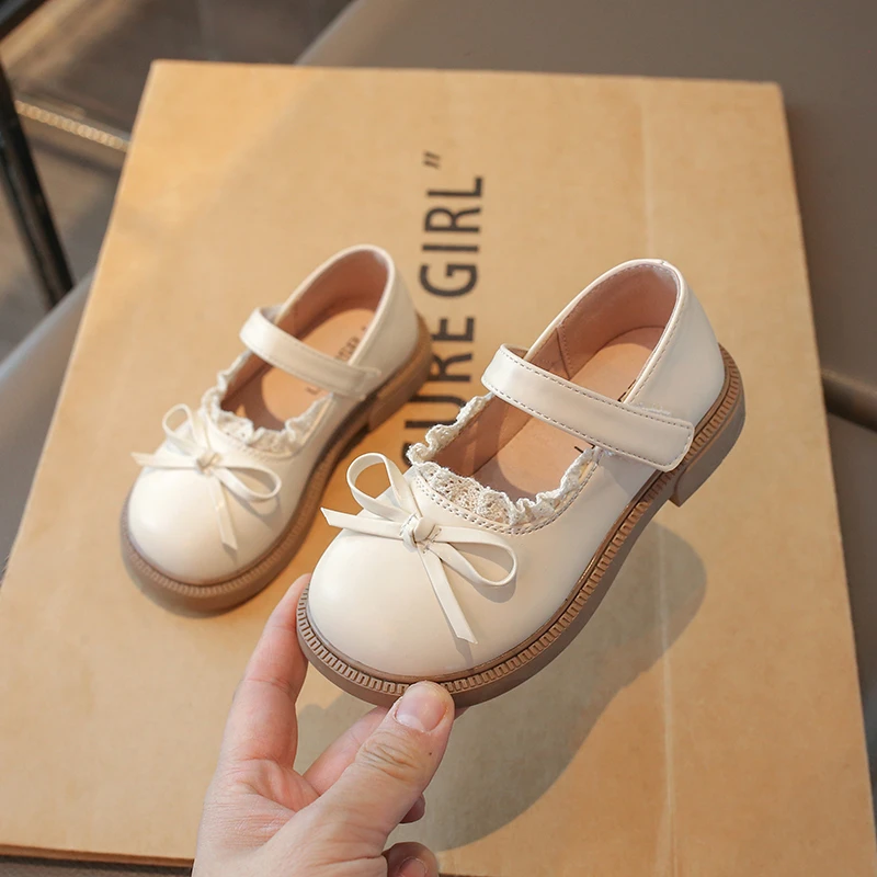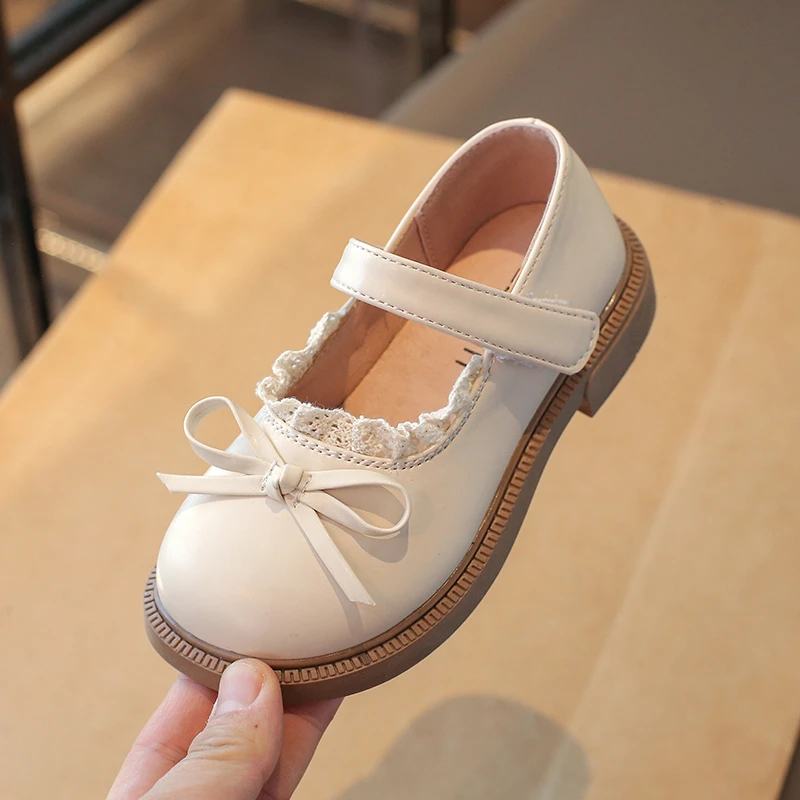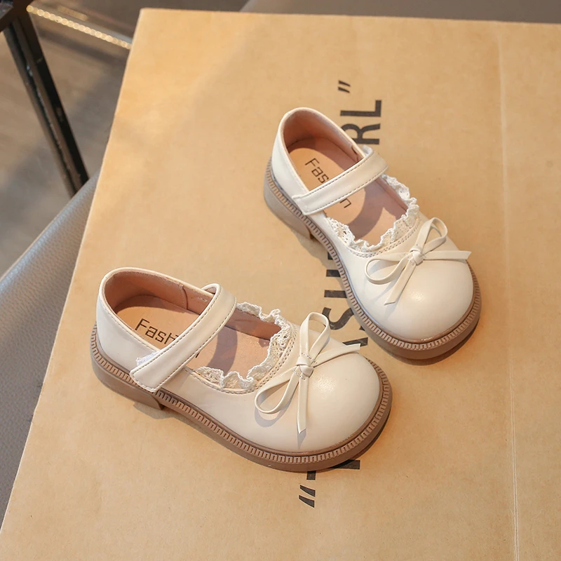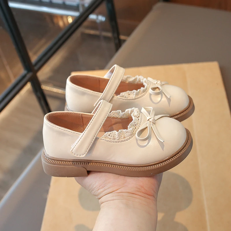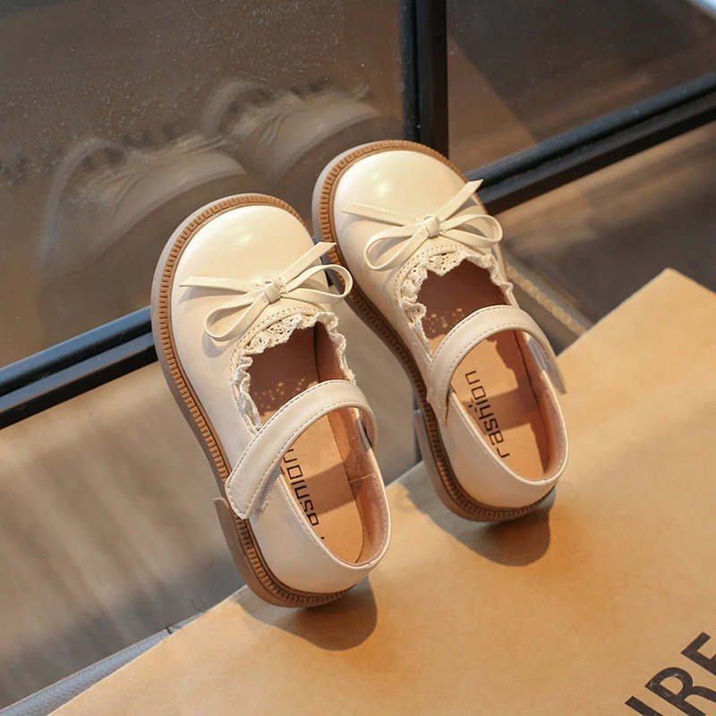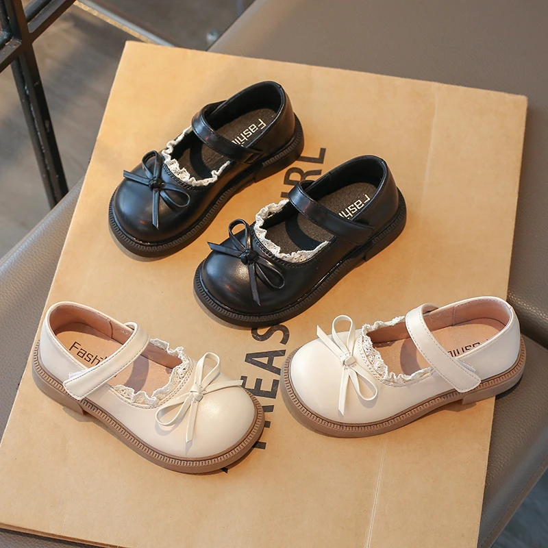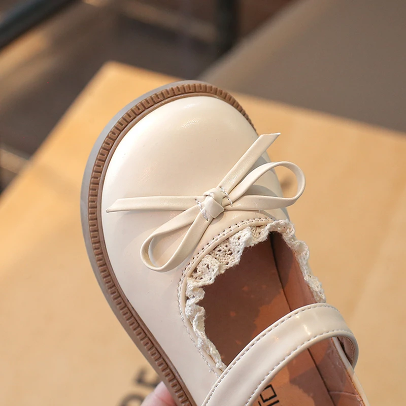 Zapatos de cuero de princesa para niñas con lazo, zapatos planos de encaje para niños, zapatos Mary Jane, zapatos de rendimiento a la moda para niños, talla 23-36