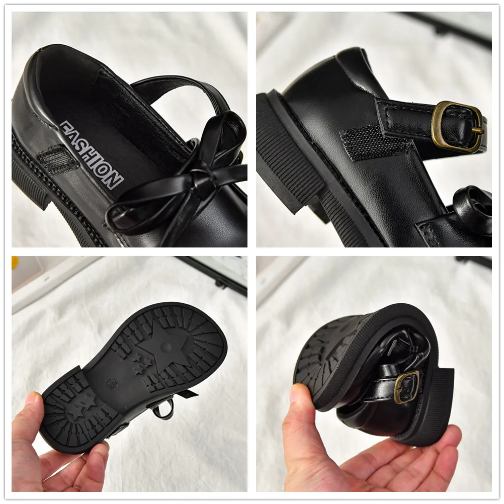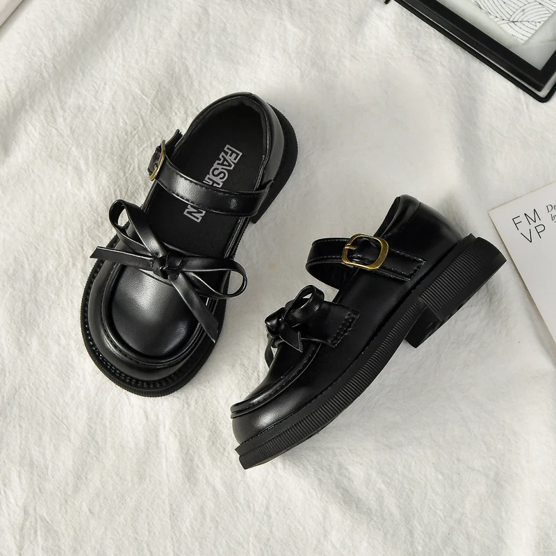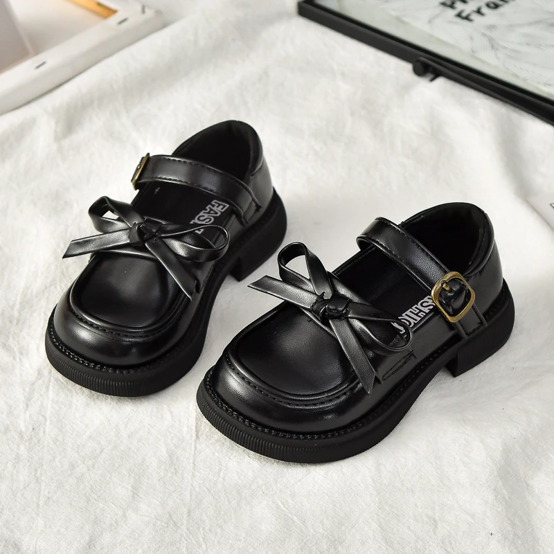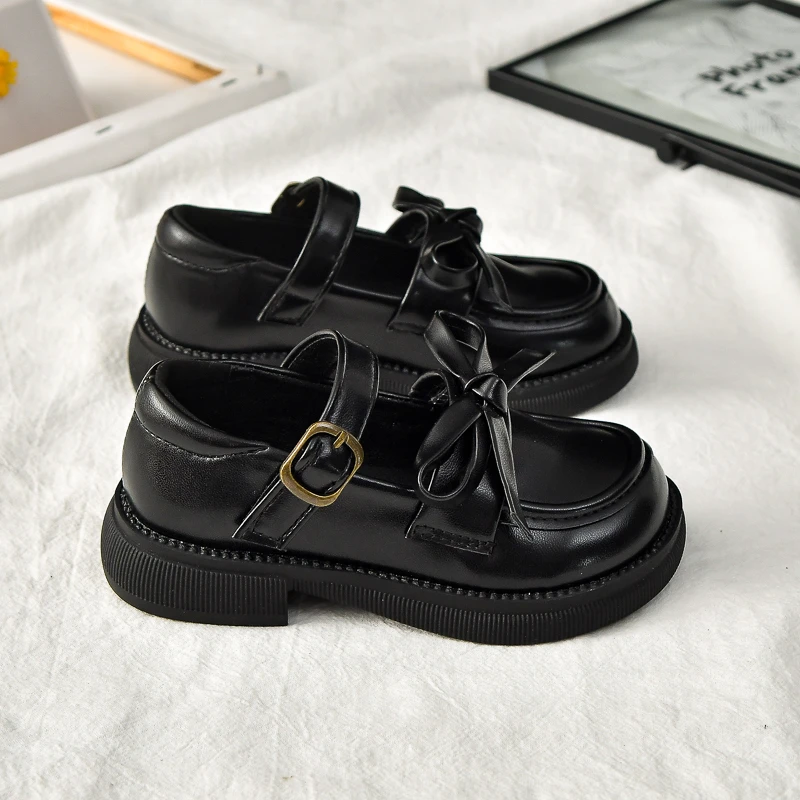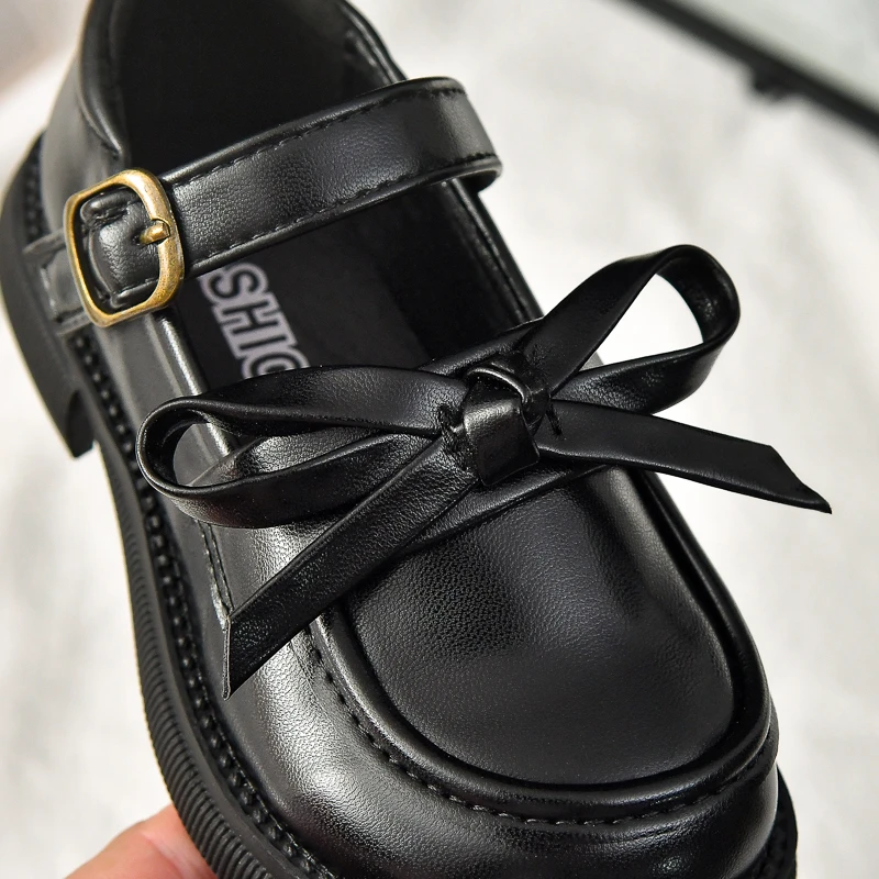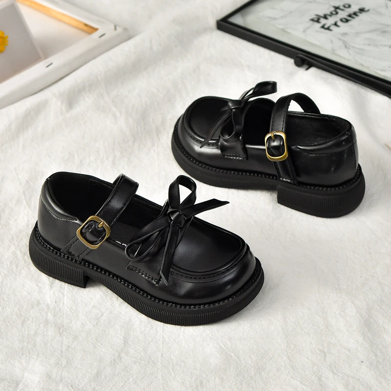 Zapatos de cuero para niñas, novedad de 2025, zapatos de vestir para niños pequeños de otoño con bonito lazo, zapatos planos antideslizantes de princesa para la escuela, zapatos planos Mary Jane Ins