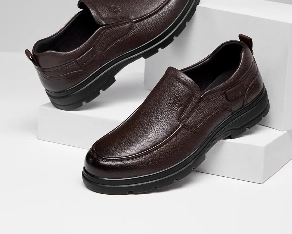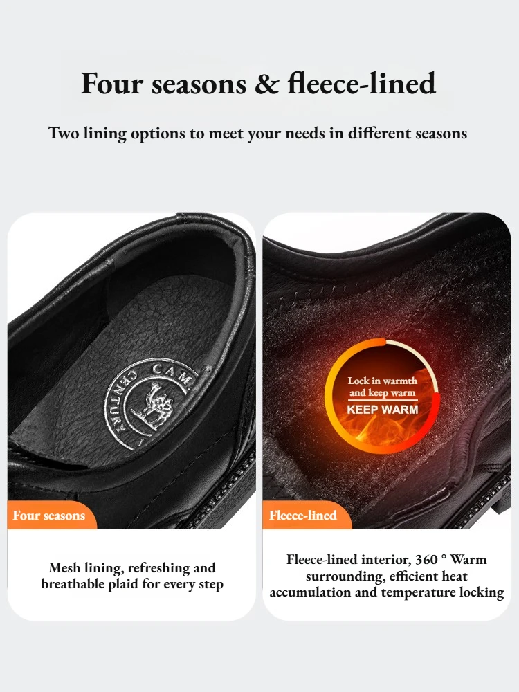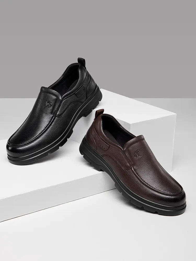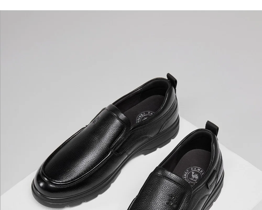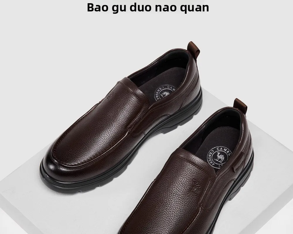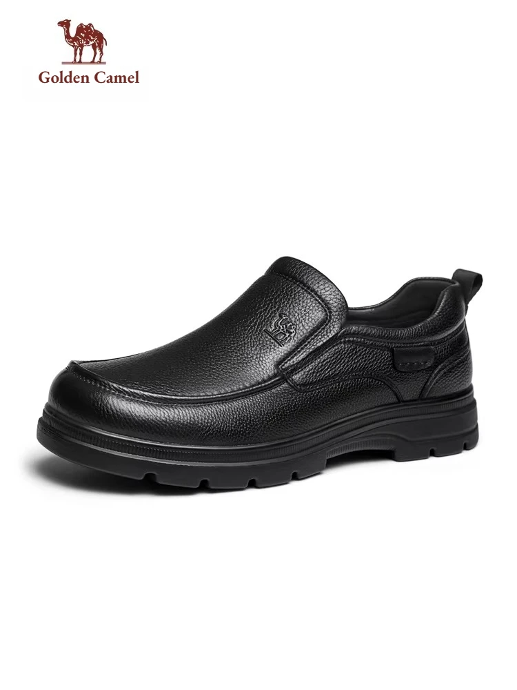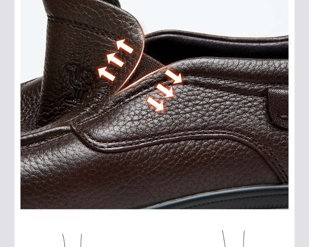 Zapatos de hombre Golden Camel 2026, nuevos zapatos informales de negocios de suela suave de cuero, mocasines cálidos de terciopelo antideslizantes con suelas blandas de diseño de marca