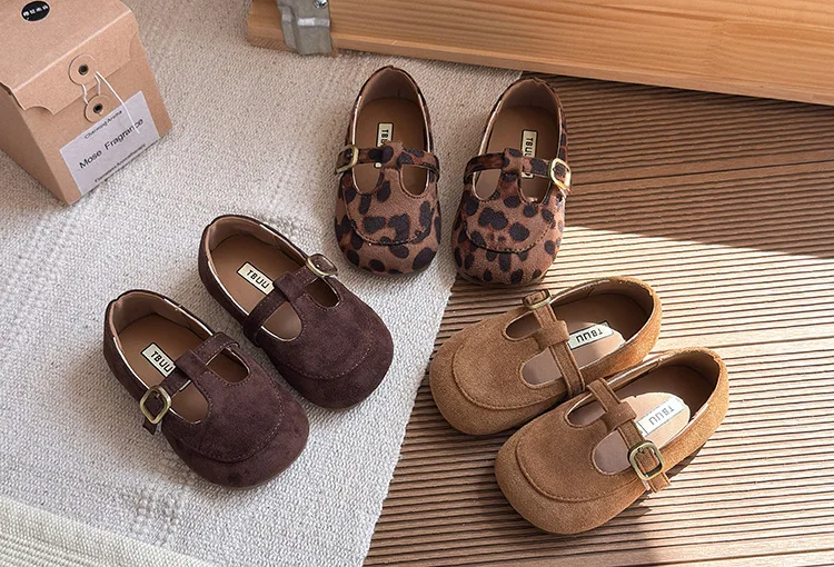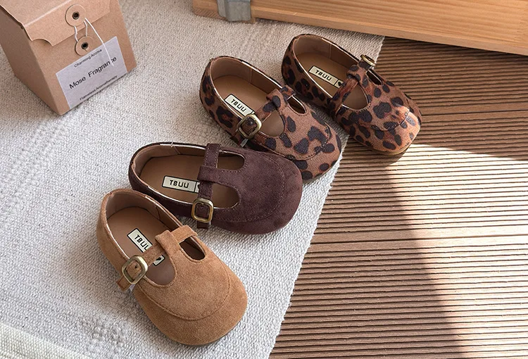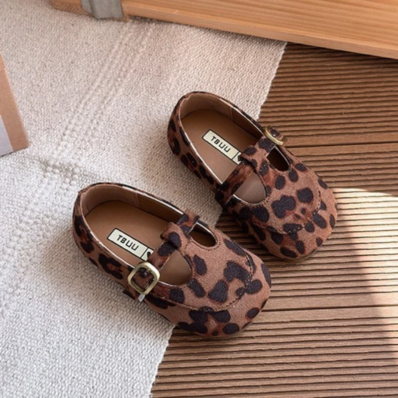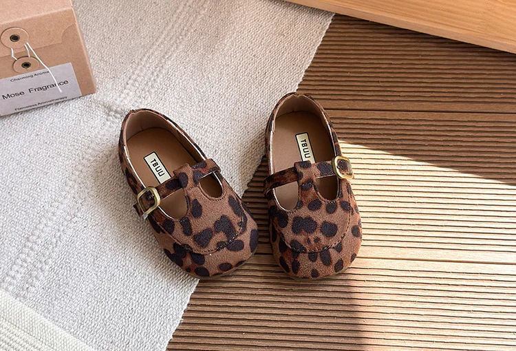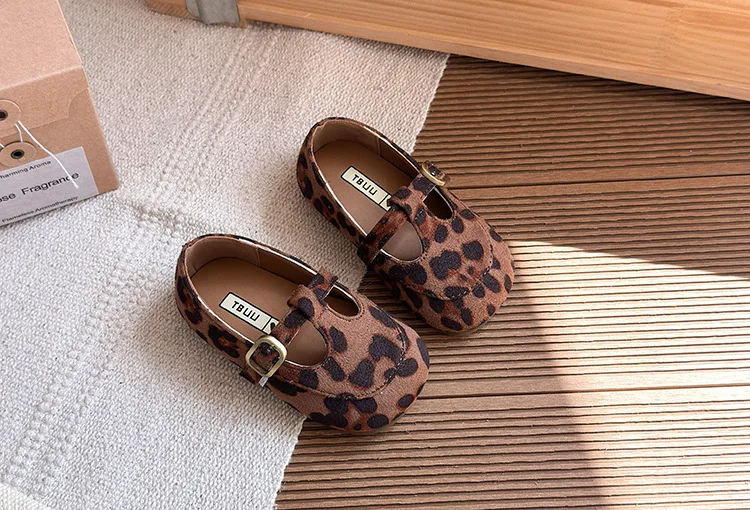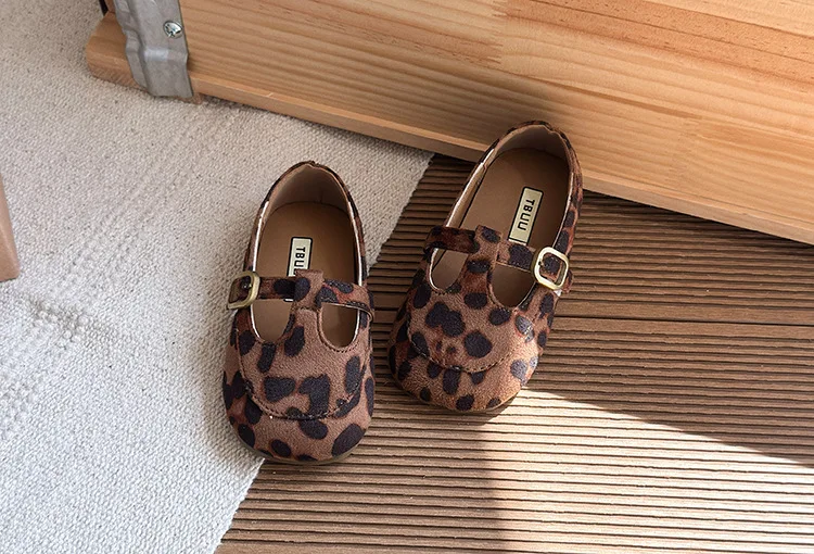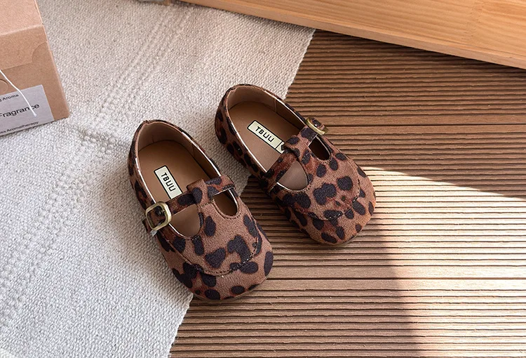 Zapatos de princesa para niña, zapatos planos antideslizantes cómodos para otoño 2025, zapatos de cuero con estampado de leopardo antideslizantes para niños pequeños