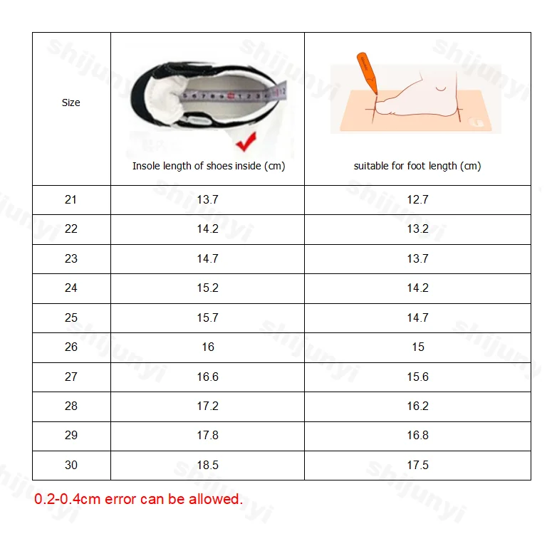 1. Elige la talla según la longitud de tu pie (¡¡¡No elijas la talla según la talla habitual en tu país!!!) 2.Debido a la medición manual, permita un error de tamaño de 0-0,5 cm. 3.Si tiene alguna pregunta, comuníquese primero con nuestro servicio de atención al cliente, lo ayudaremos a resolverla. ¡Lea atentamente nuestra tabla de tallas! Puede ayudarle a elegir el tamaño correcto según la longitud de su pie. Tenga en cuenta que si sus pies son demasiado largos o demasiado anchos, elija una talla más grande de lo habitual.