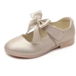 Zapatos de princesa para niños, zapatos de cuero con lazo dorado, rosa y blanco para niñas, zapatos planos de baile personalizados con flores para niñas, talla 26-36 CSH791