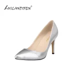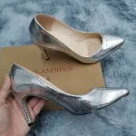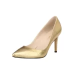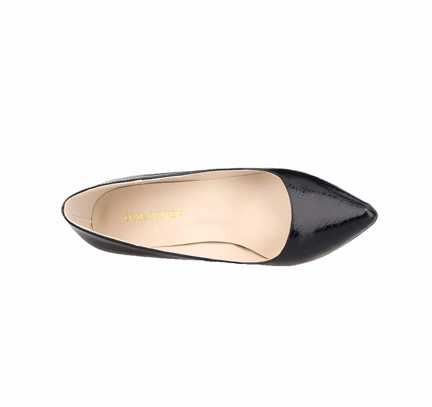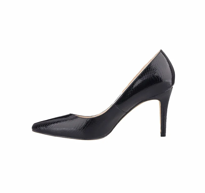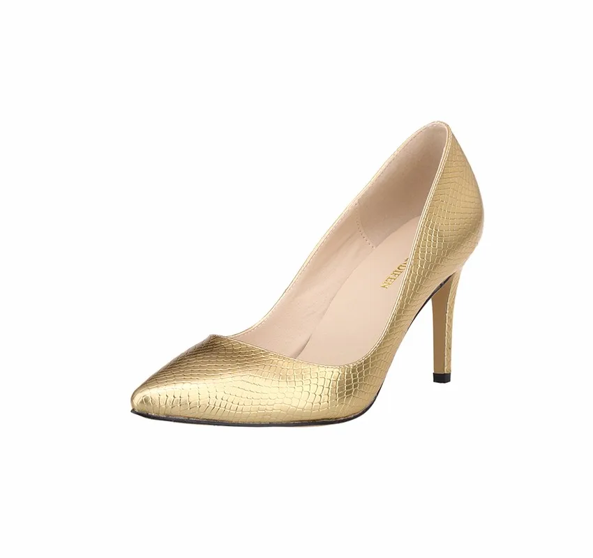Zapatos de tacón alto con estampado de cocodrilo para mujer, tacones altos con punta puntiaguda, tacones medios para oficina, zapatos de boda dorados y plateados de talla grande, 8cm