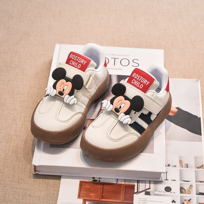 Zapatos informales de Disney para niños, bonitas zapatillas de deporte de Minnie para niñas, zapatos deportivos de moda de Mickey para niños, zapatos de suela blanda antideslizantes para niños