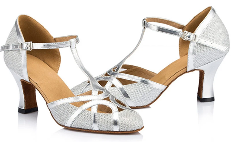 Zapatos latinos de Salsa, Tango, salón de baile, fiesta, boda, tacones para mujer, champán, plata, negro, zapatillas de baile para niñas, zapatos de verano para exteriores
