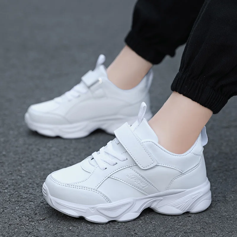 Zapatos para niños, zapatillas informales para niños, zapatos deportivos de cuero Pu negro para niños y niñas, zapatos blancos, zapatillas de tenis para correr escolares
